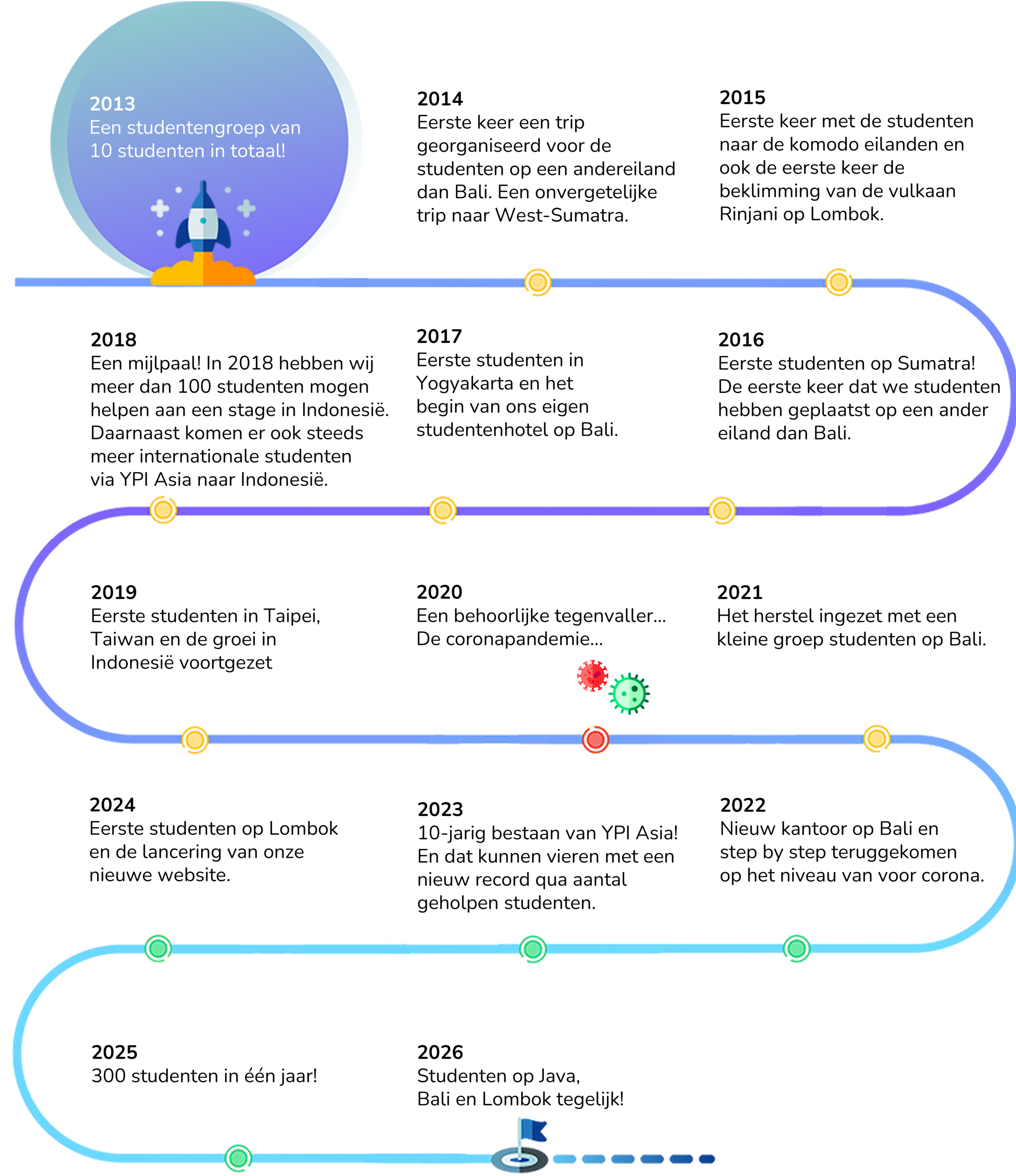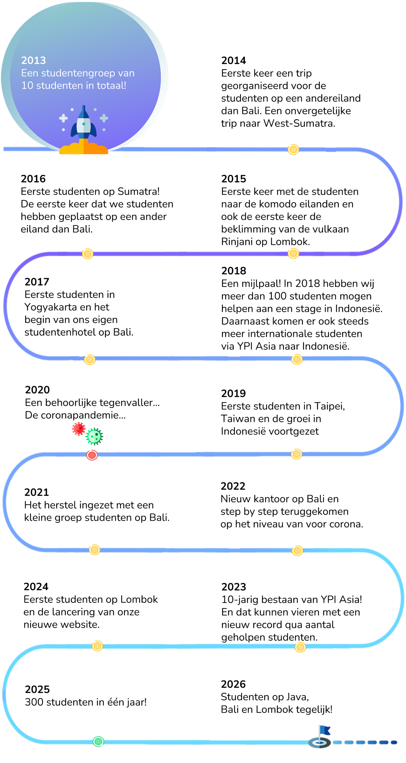Young Professionals Internships (YPI Asia) is een stagebureau dat in 2013 is opgericht door Nederlandse studenten die zelf hebben gestudeerd en stagegelopen in Indonesië en andere landen in Azië. Omdat wij deze ervaring zelf hebben meegemaakt, helpen wij nu studenten van over de hele wereld om Indonesië te ontdekken en dezelfde onvergetelijke herinneringen te creëren.